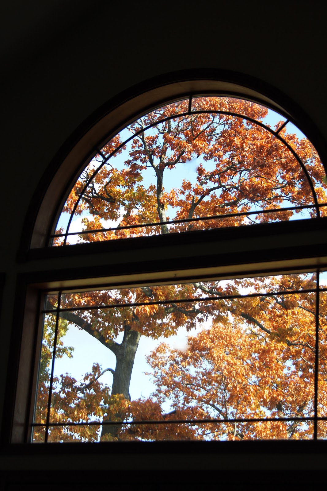 What beautiful windows! You're so fortunate to have such a lovely view. The autumn leaves are especially pretty.